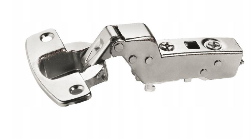 Do drzwi drewnianych Firma: Hettich Materiał: Stal niklowana Kod zawiasu: 9073619 Kod prowadnika: 9071576 Zestaw zawiera: Zawias + Prowadnik