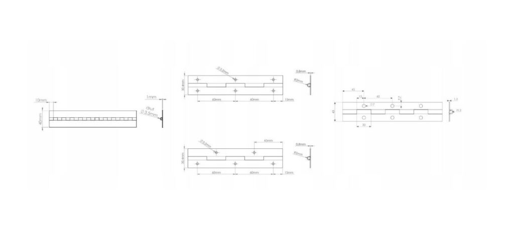 Produkowane zawiasy charakteryzują się wysoką jakością, wytrzymałością i precyzją. Wykorzystać je można do szaf, barków, mebli tapicerowanych i innych połączeń otwieranych. Są one alternatywą dla tradycyjnych zawiasów puszkowych — w przeciwieństwie do nich zawiasy taśmowe nie wymagają frezowania w płycie. Zawiasy taśmowe nazywane są również zawiasami fortepianowymi. Wykonywane są z wytrzymałej stali zapewniającej stabilną konstrukcję, a ponadto są dostępne w nietypowych długościach, dzięki czemu nadadzą się do zadań specjalnych. Co więcej, zawiasy taśmowe są proste w montażu i można je przykręcić do powierzchni ogólnodostępnymi w sklepach budowlanych standardowymi wkrętami. Poza ofertą zawiasów dostępnych od ręki mamy możliwości produkcyjne, by sprostać nietypowym zagadnieniom.