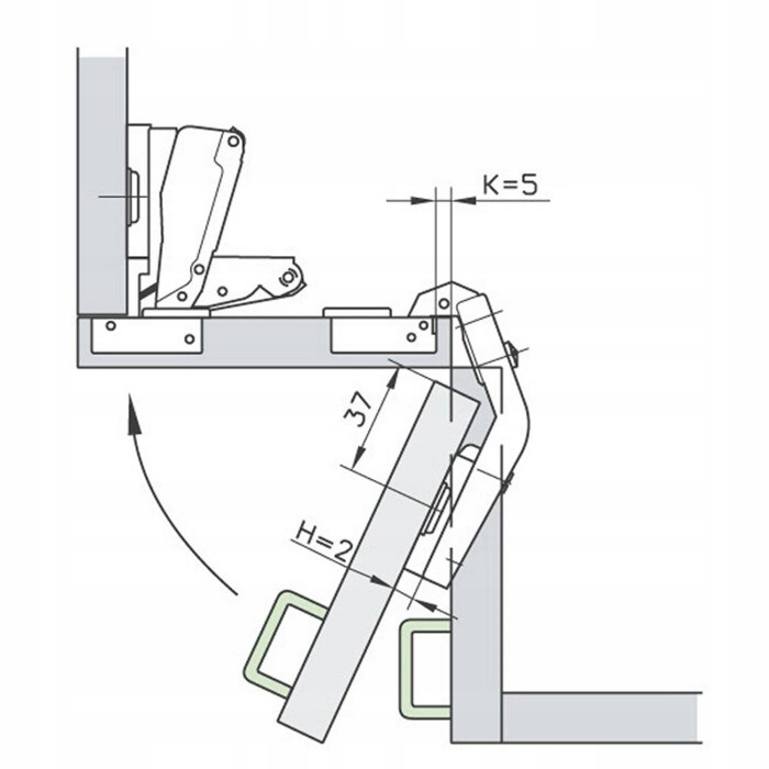 Zawias uzupełniający należy stosować z zawiasami o dużym kącie otwarcia np. FGV 175°