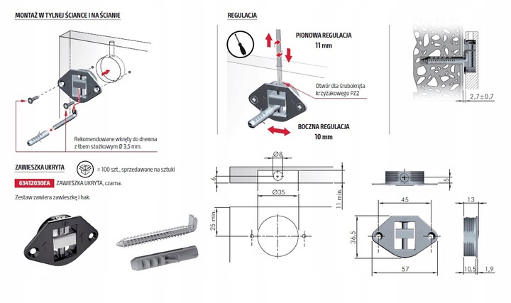 - Ukryte mocowanie zawieszki do mocowania luster, paneli ściennych i