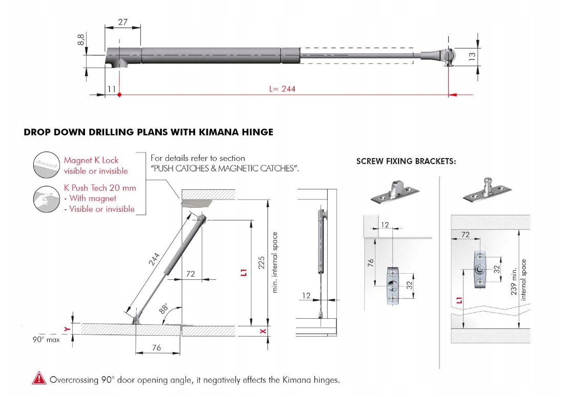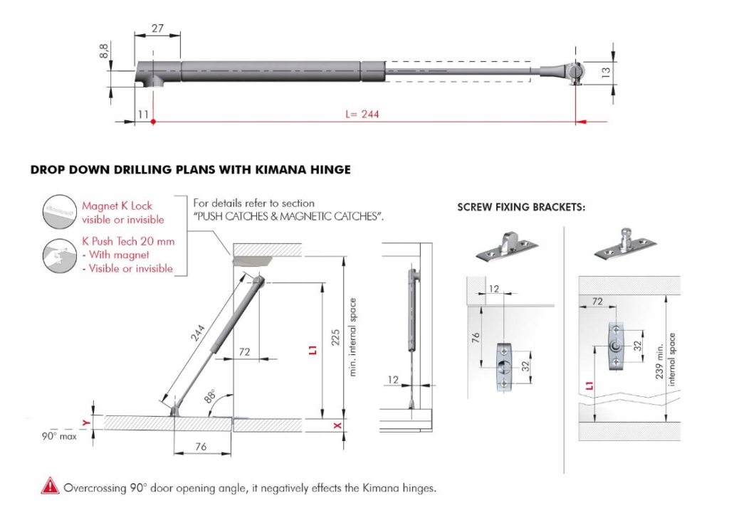 - Maksymalny kąt otwarcia: 90 stopni