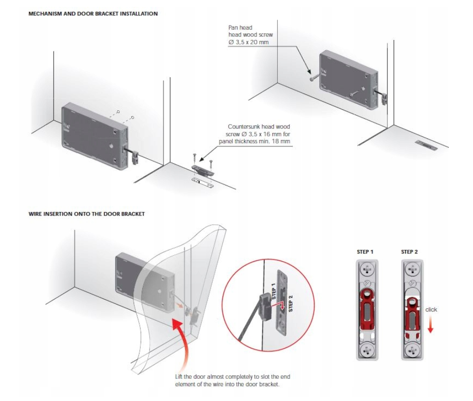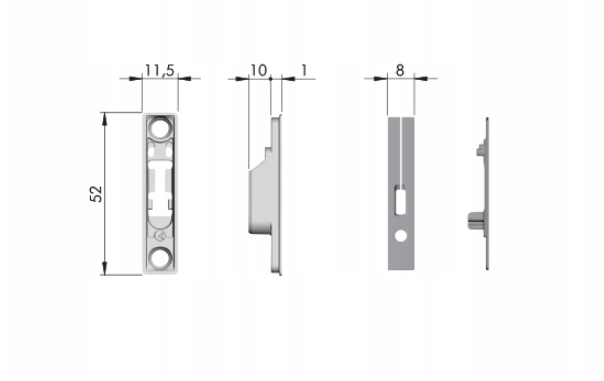 Najlepiej stosować z zawiasami Kimana lub zwykłymi nakładanymi bez sprężyny.
