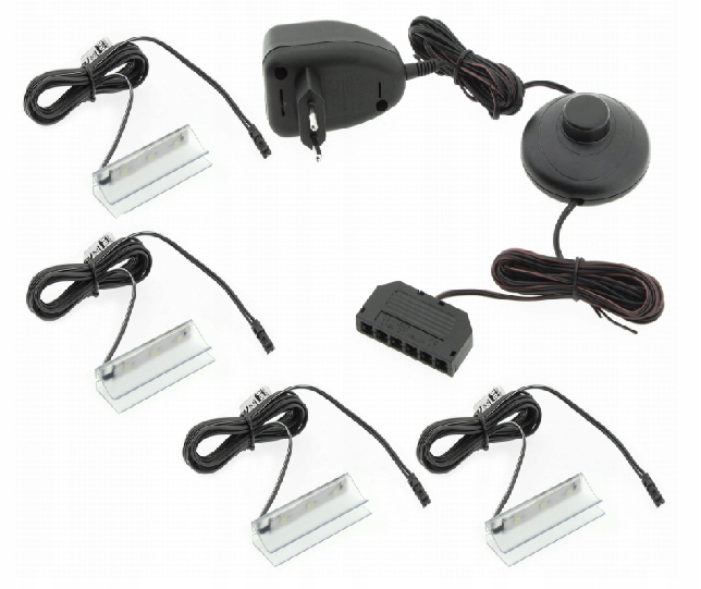 - Zasilacz LED o mocy 1,8 W, z 4-metrowym przewodem, wyłącznikiem nożnym oraz rozdzielaczem 6-punktowym, umożliwiającym podłączenie maksymalnie 6 klipsów.