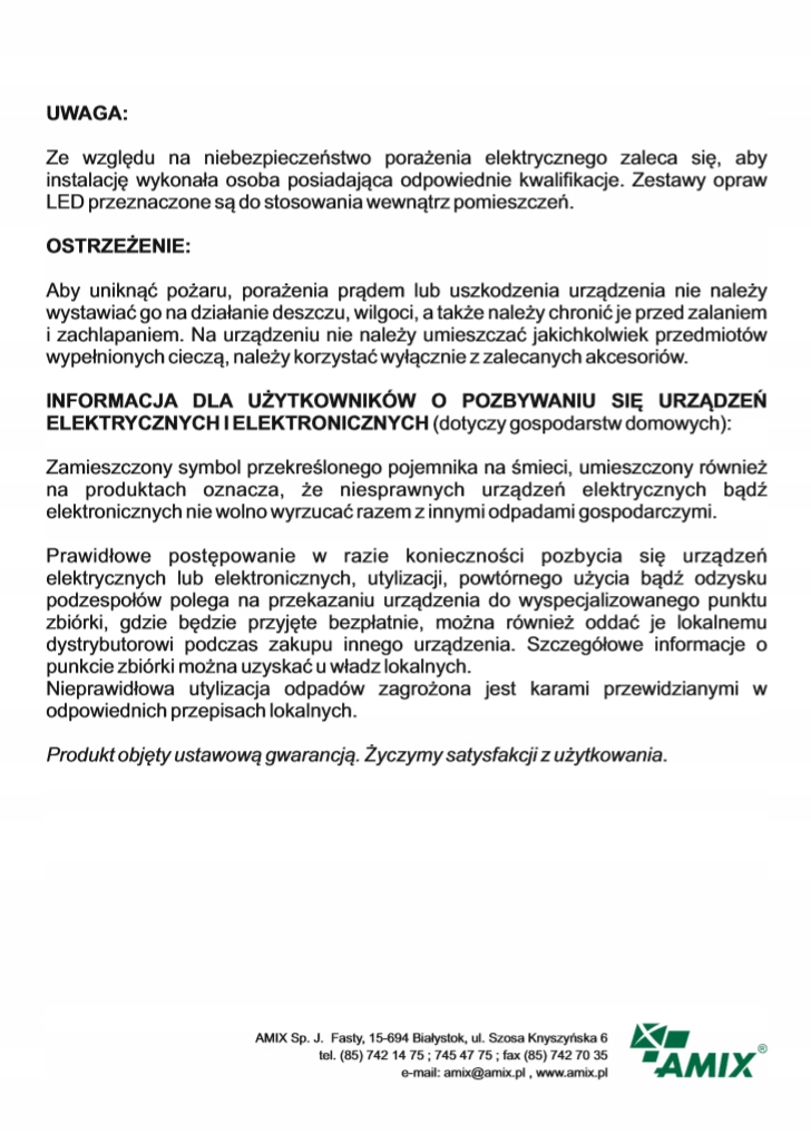 › napięcie zasilające: 230V AC / 50 – 60Hz