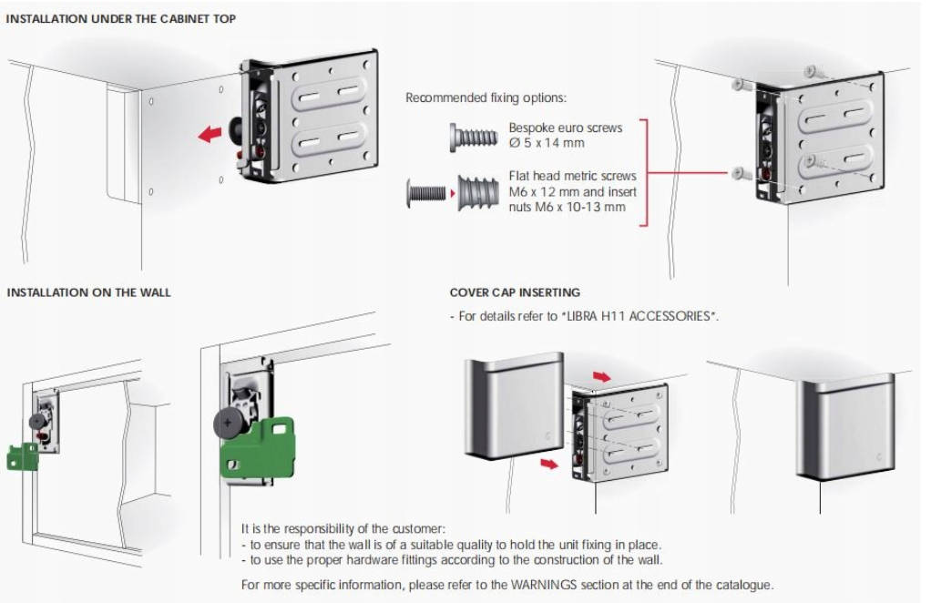 Libra H11 idealnie sprawdzi się do podwieszanych szafek dolnych. Wyposażona jest w specjalny system ANTI-TURNOVER zapobiegający przypadkowym upadkom szafek.