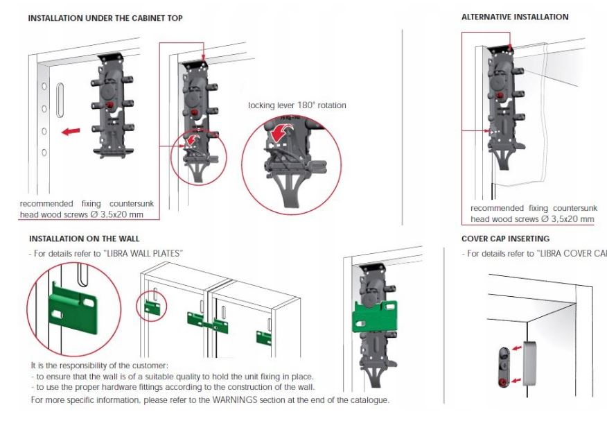 Zestaw zawieszka do szafek Libra H2 L+P Italiana Ferramenta Libra H2 idealnie sprawdzi się do podwieszanych szafek górnych. Wyposażona jest w specjalny system ANTI-TURNOVER zapobiegający przypadkowym upadkom szafek.