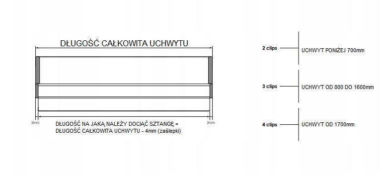 *Zestawów należy zakupić tyle sztuk na ile panujemy pociąć profil SYMA14. Jeśli chcemy z 3 metrowej sztangi uzyskać 10 uchwytów to należy zakupić 10szt. zestawu montażowego.