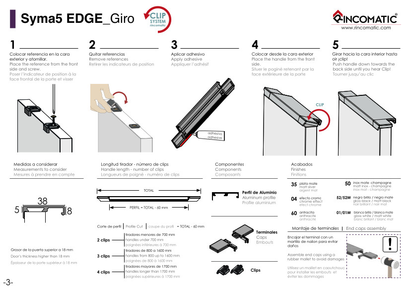 Przedstawiamy Państwu zestaw montażowy z zaślepkami Syma5- Giro w kolorze czarnym. Zaślepki Giro i profil SYMA5 możemy stosować w przypadku zarówno szuflad, jak i standardowych. Uchwyt montowany jest na całą długość frontu meblowego. W przypadku montażu, należy pamiętać o jego wysokości 5mm, którą należy odjąć od całkowitej wysokości frontu. W przypadku dobrania odpowiedniej długości uchwytu, należy od szerokości całkowitej frontu odjąć 60mm, Różnice zniwelujemy także zaślepkami.Zestaw montażowy z zaślepkami: zapewnia trwałość, solidność oraz perfekcyjne wykończenie.