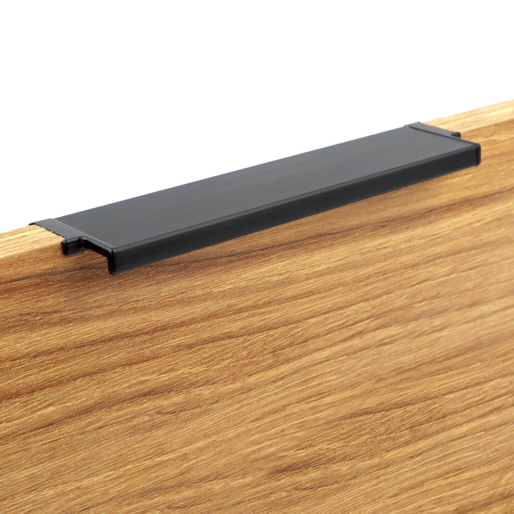 Dzięki zastosowaniu zaślepek w wersji Total otrzymamy minimalistyczny uchwyt wewnętrzny, tworzący na krawędzi frontu spójną całość. Uchwyt może być zamontowany zarówno w płaszczyźnie poziomej jak i pionowej. Aby zamontować uchwyt należy wyfrezować w krawędzi frontu zagłębienie o głębokości 5mm, aby dopasować profil pod żądaną szerokość od całkowitego wymiaru wyfrezowania odejmujemy 12mm.