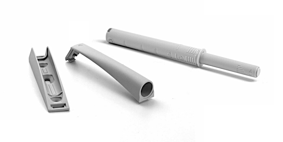 K-PUSH TECH to system bezuchwytowego otwierania szafek. Wewnętrzny mechanizm zapewnia trwałą jak i cichą pracę systemu. K-Push tech dostępny jest w wersji z magnesem stosowany w szafkach z zawiasami bez sprężyny lub odwrotną sprężyną jak i w wersji z odbojnikiem stosowanej w szafkach ze standardowymi zawiasami sprężynowymi. Zestaw zawiera odbojnik K-Push w wersji Strong, adapter oraz płytkę montażową.