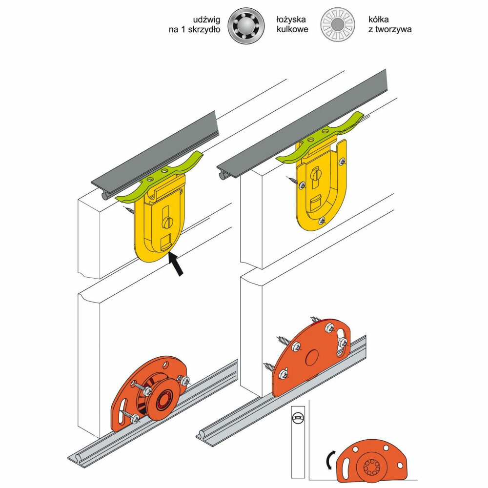 Zestaw okuć FAST do drzwi przesuwnych do niskich i wysokich zabudów, 1,5m, 1-drzwi