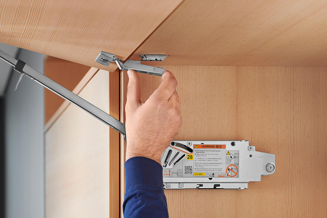 AVENTOS HF montuje się szybko i wymaga niewielkiej ilości narzędzi. Aby uzyskać najlepszą wydajność, siłownik można regulować za pomocą wkrętarki akumulatorowej. AVENTOS HF gwarantuje tym samym niezawodne otwieranie, zamykanie i zatrzymywanie. Front można regulować w 3 płaszczyznach, co pozwala na uzyskanie idealnego ułożenia slotów.