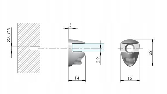 Średnica trzpienia: 5 mm Długość podpórki: 14mm Szerokość: 16mm Wysokość: 22mm Ilość: 100 szt.