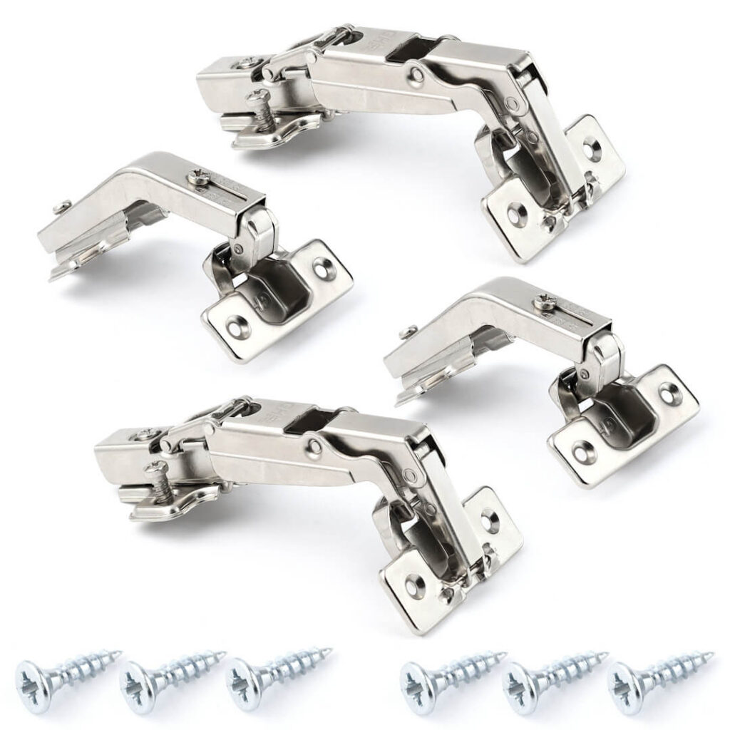 Komplet zawiasów do szafki narożnej, 2 x zawias 165° z samodomykaczem + 2 x zawias uzupełniający 135° + wkręty