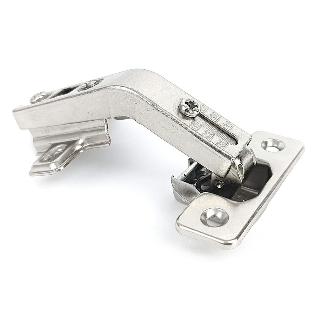 Zawias do szafki narożnej 165° stopni z funkcją cichego domyku i prowadnikiem na wkręty euro to nowoczesne rozwiązanie, które zapewnia użytkownikowi wygodę i komfort w codziennym użytkowaniu mebli. Zawiasy te pozwalają na pełne otwarcie drzwi szafki do kąta 165°, co zapewnia łatwy dostęp do wnętrza szafki.