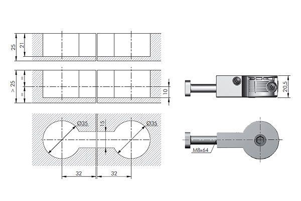 Złącze do blatu Quick L-100 mm, Ø35 mm,