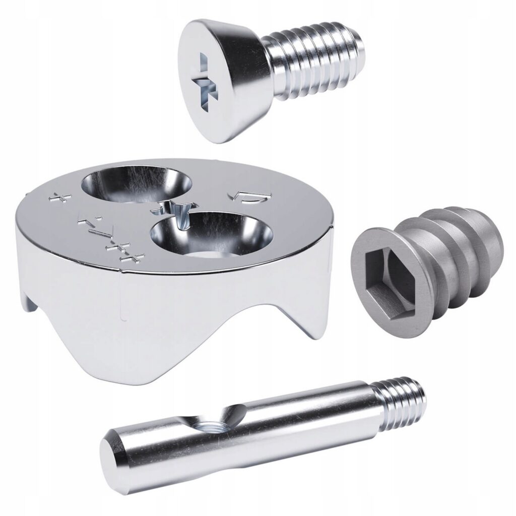 - Śruba M8x15 – Śruba M8x15 pozwala na prosty montaż całego złącza, zapewniając szybkie i bezproblemowe skompletowanie konstrukcji łóżka.