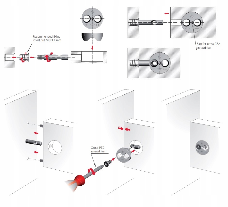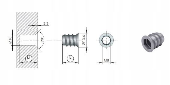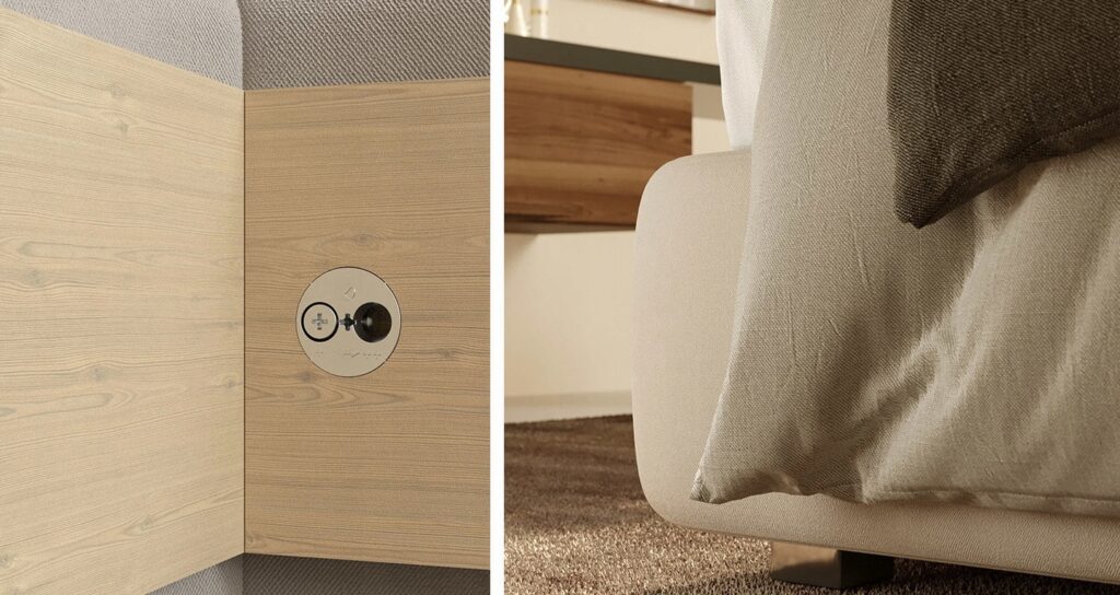 - Trzpień mocujący – To główny element zestawu, który z łatwością wkręca się w mufę osadzoną w panelu. Podsumowując solidne połączenie trzpienia z mufą sprawia, że cała konstrukcja łóżka staje się niezwykle stabilna, eliminując ewentualne luzowanie się połączenia.